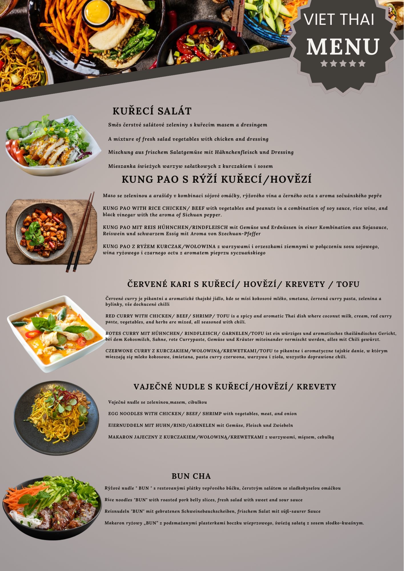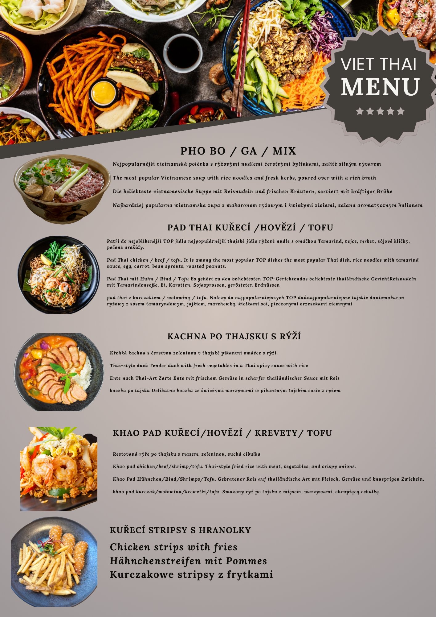 Restaurant mit Halbpension Reservierungen: (+420) 776 535 999 | E-Mail: vietthailiberec@email.cz.Unseren Hotelgästen bieten wir ein neues günstiges Abendmenü an: Speisekarte: www.vietthailiberec.czÖffnungszeiten: Mo–So: 11:00–22:00